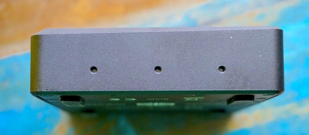 On the front are three lights: the light on the far left tells you that the input is active, the one in the middle tells you that power is on. On the right? That says that the streamer is connected.